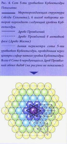 Следующая генерация Кетер порождает новое объемлющее пространство, охватывающее трехсетовый Кубоктаэдр и т.д. Древо Проявлений (мужской, активной ипостасью которого является Древо Жизни) имеет две боковых ветви, параллельных центральной колонне. (см. рис.4,5)