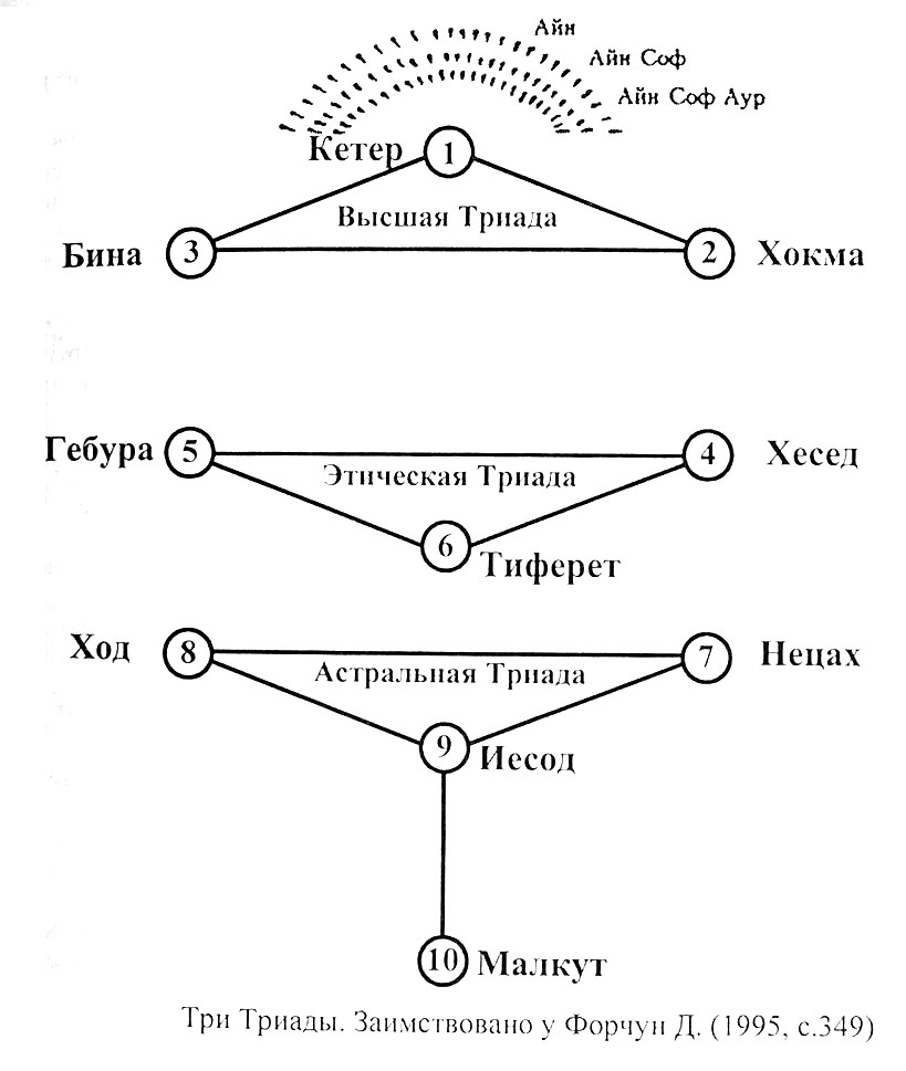 Соединительные линии, показанные на схемах, символизируют "Пути", эволюционно связывающие между собой отдельные Сефирот (множ. от Сефира) - замкнутые "Вселенные", содержащие бесчисленные "внутренние миры". При этом используется традиционно принятая каббалистическая терминология.