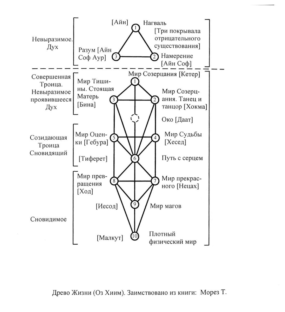 Древо Жизни понималось нашим человечеством как высшая схема организации "Всего Сущего". Она веками использовалась в качестве карты Путей, восходя по которым, ученики и адепты эзотеризма достигают высших уровней своего развития. Её структура принципиально не имеет отношения к структурам, описывающим физические процессы в вещественной реальности. Она отражает структуру совместной иерархии миров (как состояний бытия разумов, проходящих в них свою эволюцию), а не их "внутримировое" устройство.